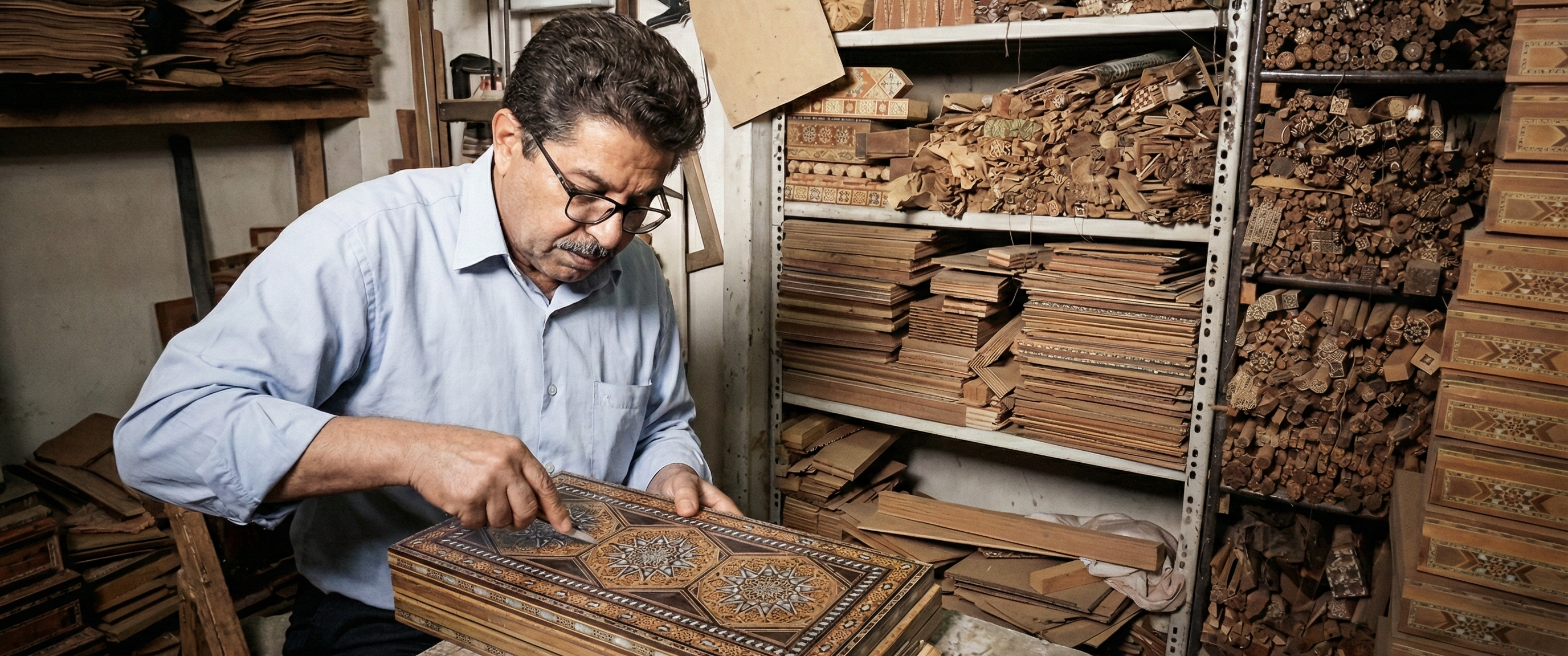 Purveyors of authentic Zakhrafa—the ancient art of Damascene wood inlay. Each piece in our collection is a masterpiece of patience and precision, handcrafted by master artisans in Damascus, the oldest continuously inhabited capital in the world.